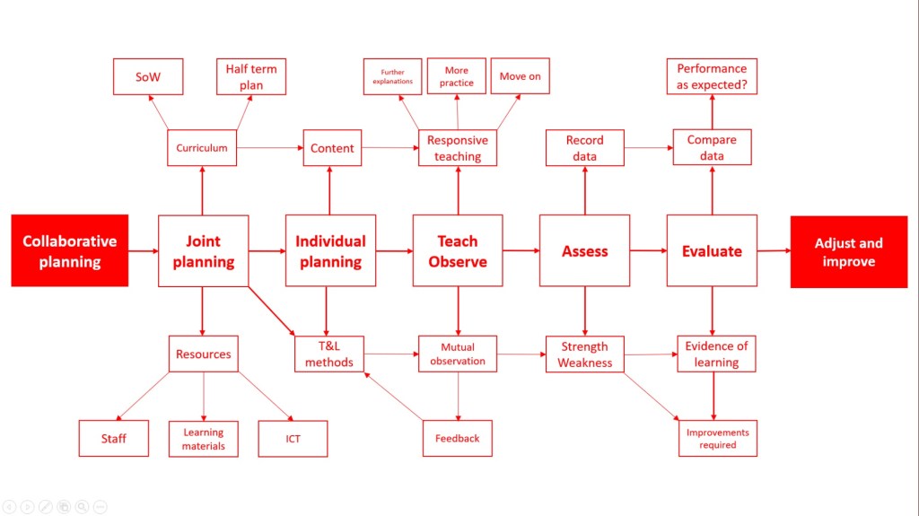 An hour well spent! Although this process involves an initial input of time, less individual time is spent planning lessons and the focus of future conversations is on the learning experience of the pupils.